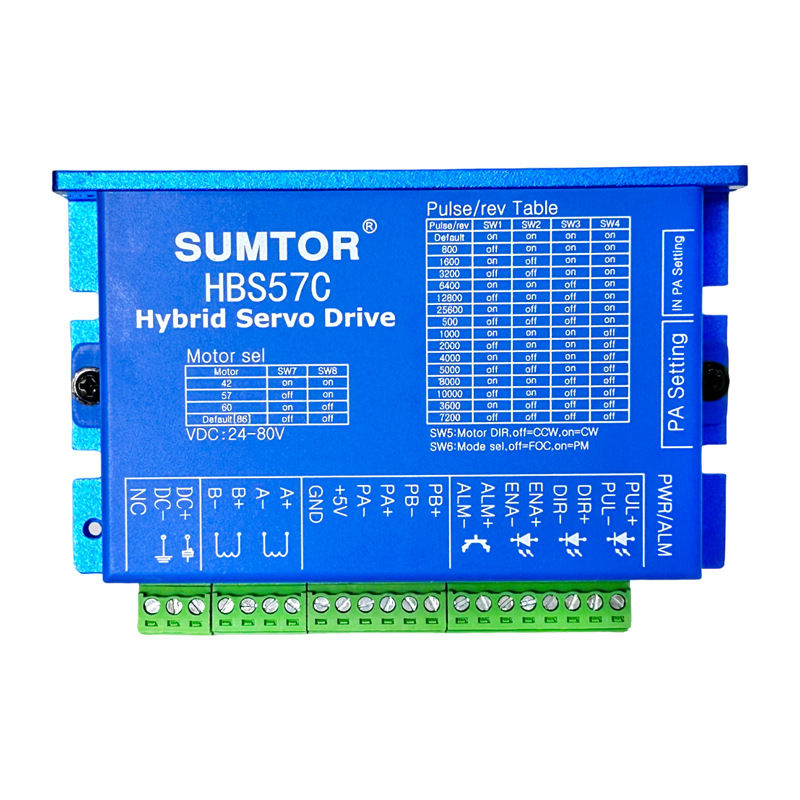 工作电压:直流输入电压24VDC~80VDC,推荐工作电压36V/48V连续输出电流最大值8.0A (先进的闭环步进过载能力)可接受差分和单端式脉冲/方向指令,具有位置/速度/力矩三种控制模式采用FOC磁场定位控制技术和空间矢量脉宽调制(SVPWM)闭环控制技术采用了先进的变电流技术和变频技术,有效的降低了电机和驱动器的发热每圈脉冲数