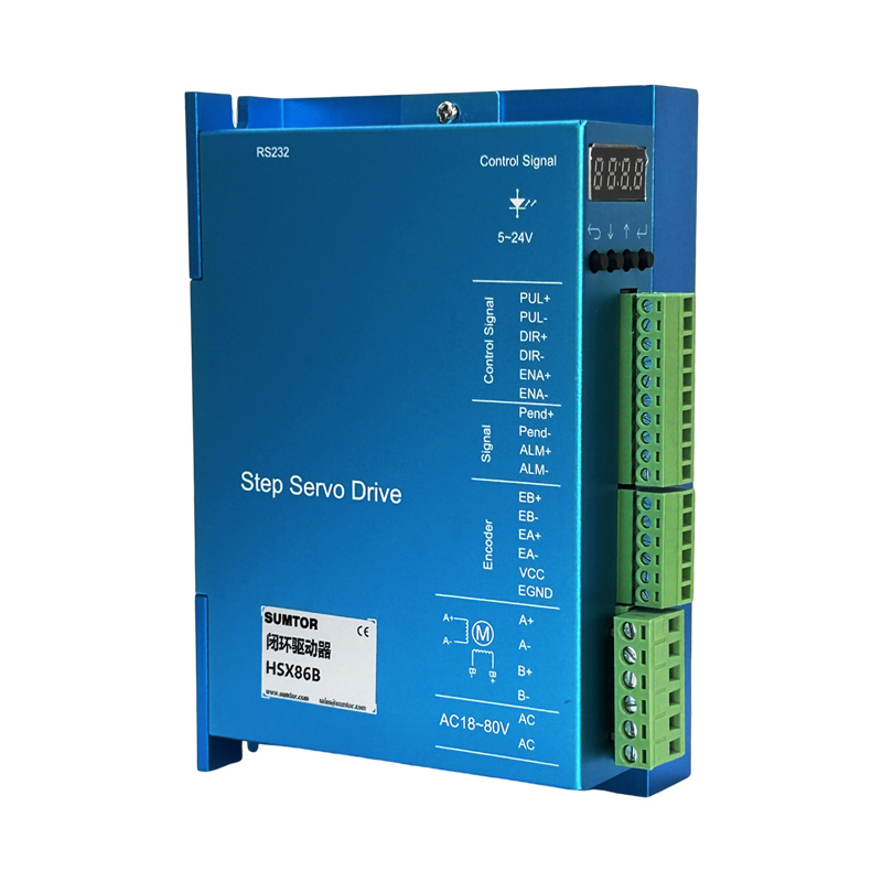 采用 32 位电机专用控制芯片;采用先进的矢量型闭环控制技术;LED 数码管显示, 方便参数设置和运行状态监控;静态电流和动态电流可以任意设置( 0~8.2A 范围内);可驱动 (57/60) 和 86 系列混合式闭环步进电机;光电隔离信号输入/输出;脉冲响应频率 200KHz;16 档通用细分选择,最大 256 细分( 51200 脉冲/转);提供一